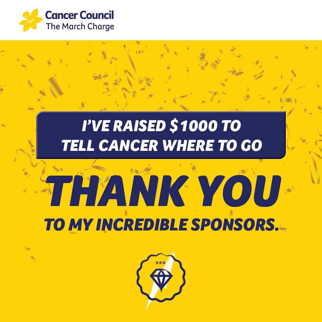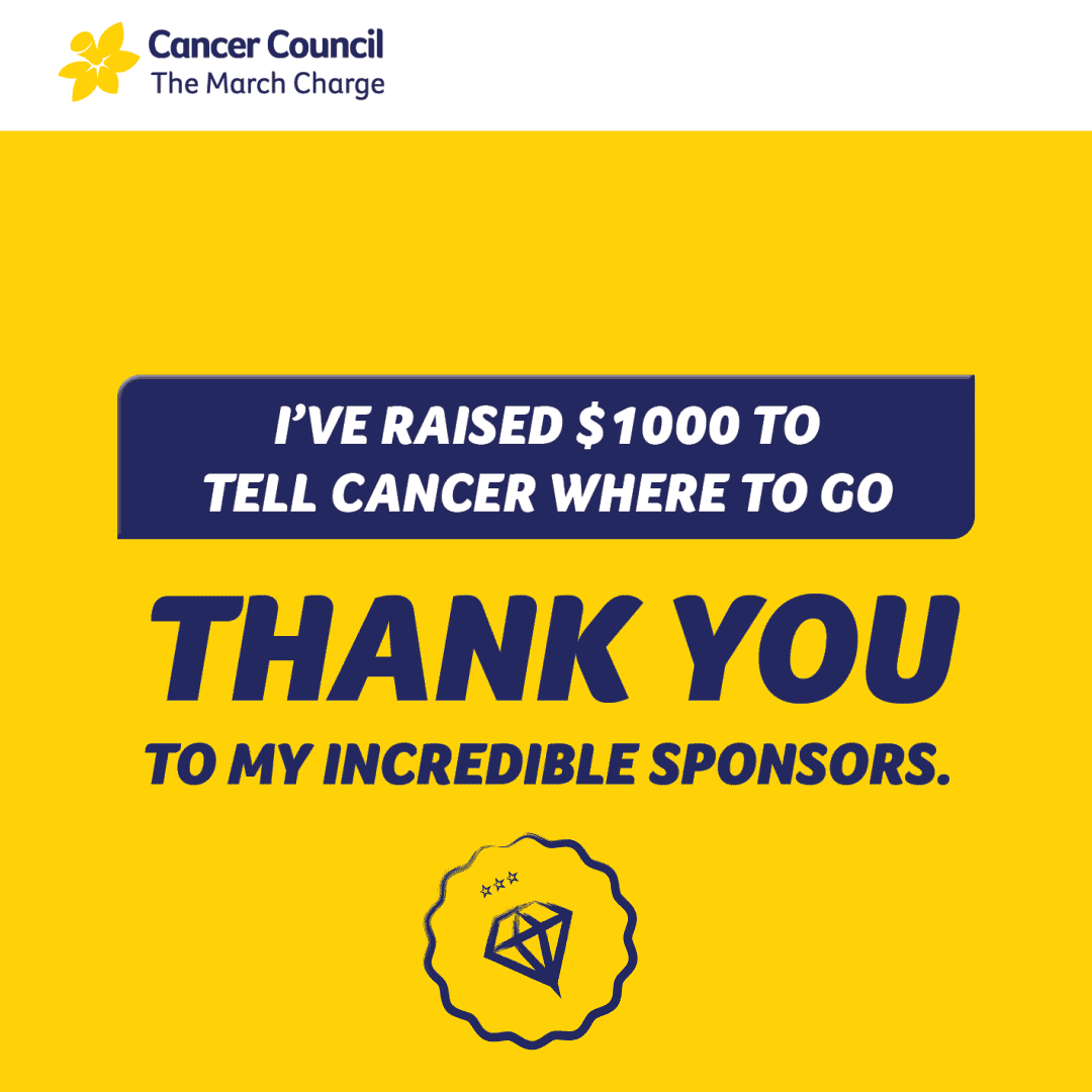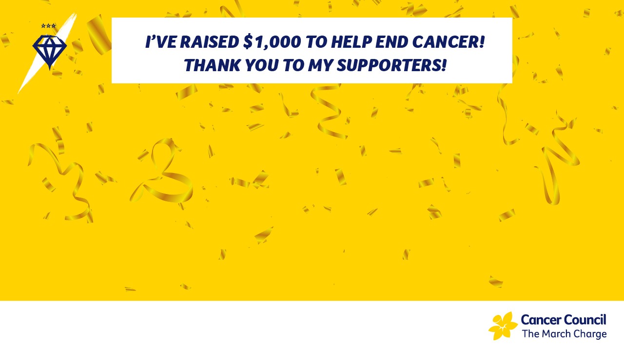 People like you are so important for making sure that we can continue researching for better treatment and prevention of cancers. THANK YOU for being an amazing Diamond Club Charger and telling cancer where to go!